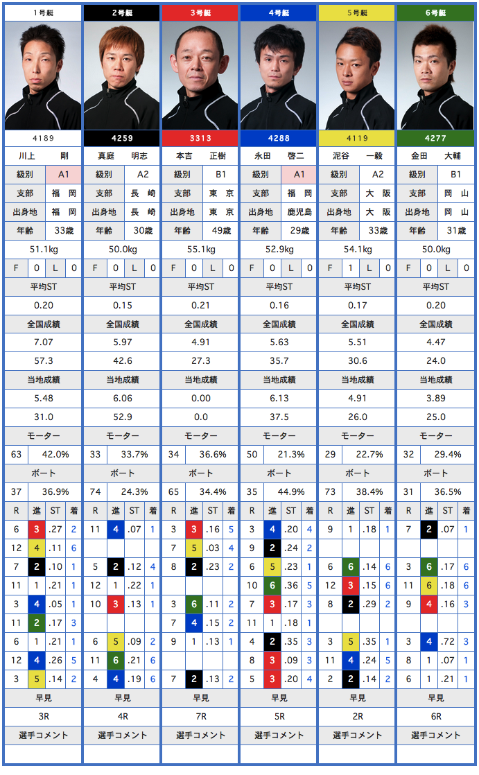 パッと出走表を見ただけでは、A1, A2選手がいる中で、幾ら3コースといえども
